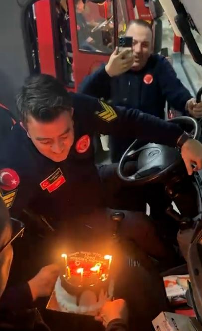 Duyduğu adres karşısında panikleyen ve "Anam anam benim ev" diyerek itfaiye aracına koşan Özer, sürücü koltuğuna geçmek için kapıyı açtığında sürprizle karşılaştı. Direksiyon başında yanan mumlarla süslenmiş doğum günü pastasını gören Özer, kısa süreli şaşkınlığın ardından rahat bir nefes aldı.