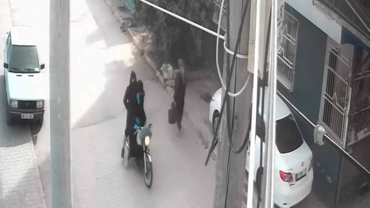 İkametin güvenlik kamerası görüntülerine göre, şüphelilerin içinde bulunduğu hafif ticari araç sokakta duruyor ve içinden çarşaflı 3 kişi çıkıyor. Daha sonra bu kişiler aracın bagajından çıkardıkları motosiklete binerek ilerliyor.