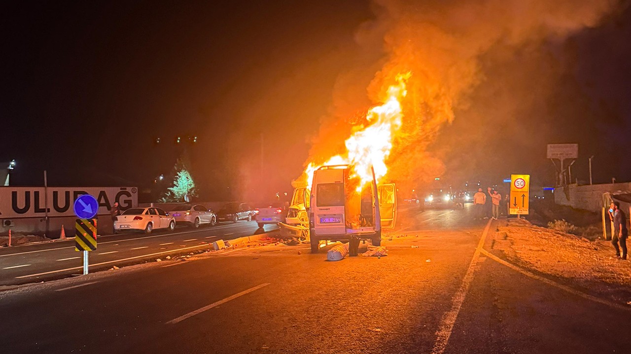Diyarbakır'da kamyonet ile minibüsün kafa kafaya çarpışması sonucu 2'si çocuk 11 kişi yaralanırken, kaza sonrası alev alan araçlardaki yangın ise itfaiye ekiplerince söndürüldü.