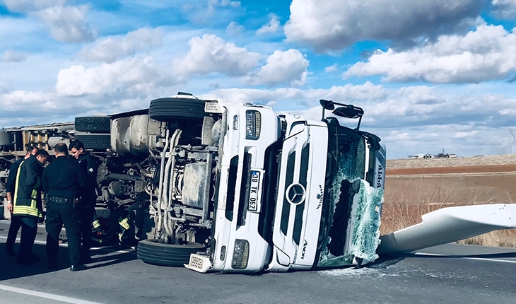 Konya-Afyonkarahisar kara yolunun 55. kilometresinde kamış yüklü tırın devrilmesi sonucu sürücü ağır yaralandı.