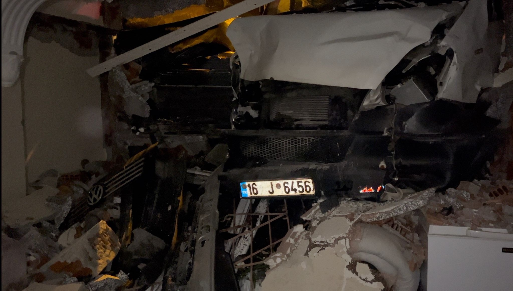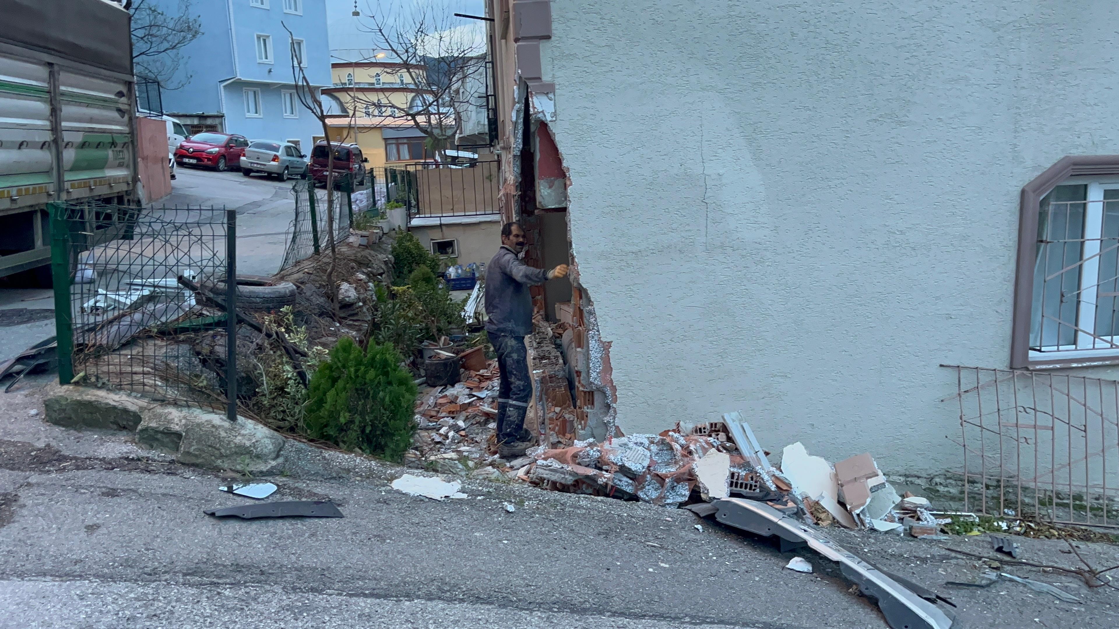 Kamyonet, önünde sürüklediği minibüsle 4 katlı apartmanın giriş katındaki dairenin salonuna girdi. Binada oturanlar gürültüyle uyanıp ihbarda bulundu.