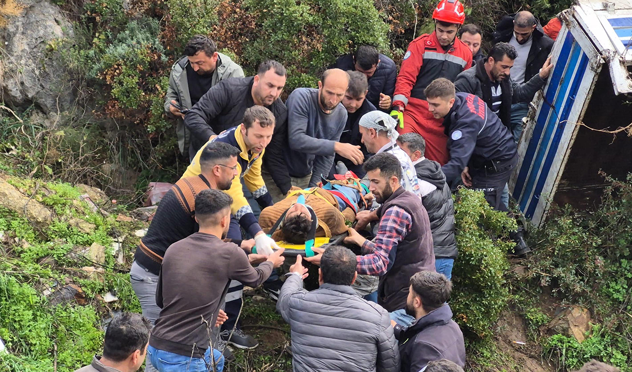 Muğla'nın Bodrum ilçesinde, kamyonetin uçuruma yuvarlandığı kazada 3 kişi yaralandı.