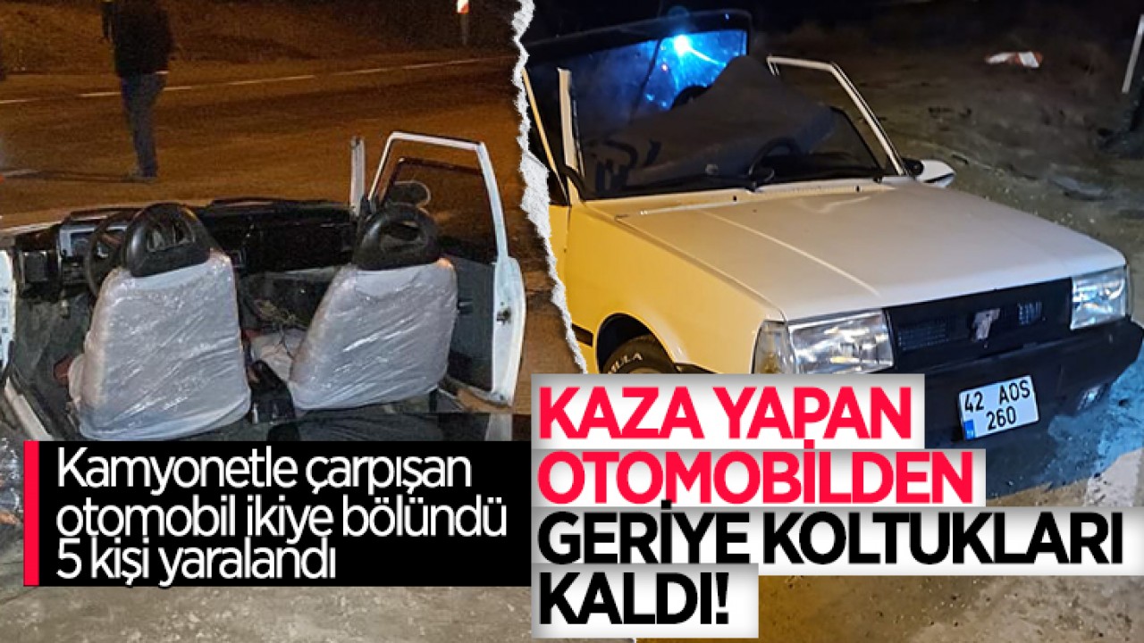Aksaray'da, kamyonet ile çarpışan otomobilin ikiye bölündüğü kazada 5 kişi yaralandı.