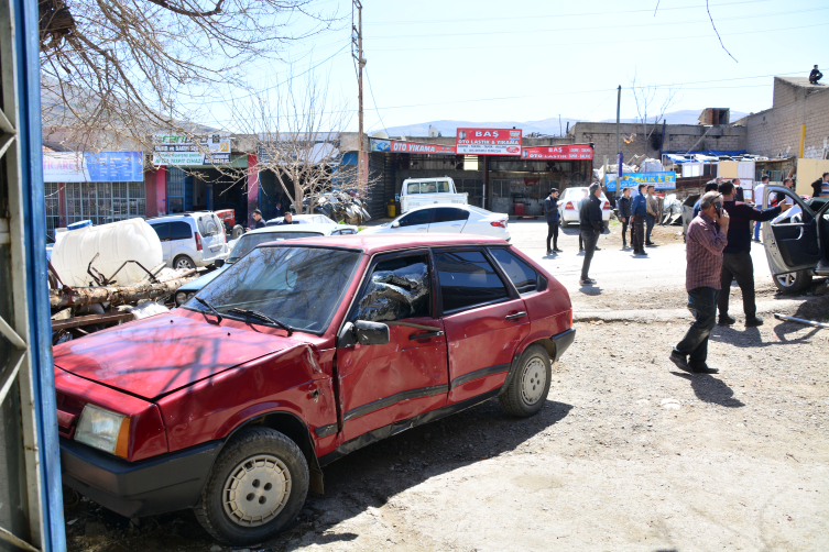 Yaralananın olmadığı kazada iş yerleri ve araçlar zarar gördü.Polis, olayla ilgili soruşturma başlattı.