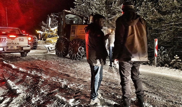 Durumun bildirilmesi üzerine Kütahya Orman Bölge Müdürlüğü Gediz İşletme Şefliği ekipleri, greyderle karla kaplı yolların açılması için çalışma başlattı.