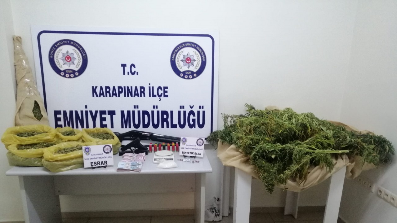 Konya'nın Karapınar ilçesinde düzenlenen uyuşturucu operasyonunda bir şüpheli gözaltına alındı.