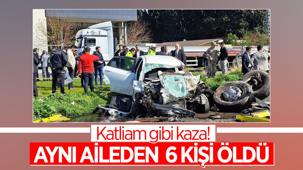 Hatay'ın Dörtyol ilçesinde, karşı şeride geçen tırın çarptığı otomobildeki aynı aileden 6 kişi hayatını kaybetti, 1 kişi yaralandı.