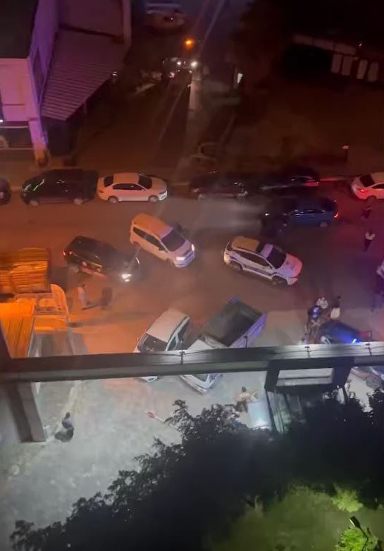 Görüntülerde, kaynanasını hastaneye götürmek için siteye kamyonetiyle girmek isteyen şahısla güvenliklerin tartıştığı ve olayın büyümesiyle tarafların birbirine girdiği anlar yer aldı. İhbar üzerine olay yerine çok sayıda polis ekibi sevk edildi. Ekiplerin müdahalesiyle güçlükle sakinleştirilen taraflar bir süre sonra dağıldı.