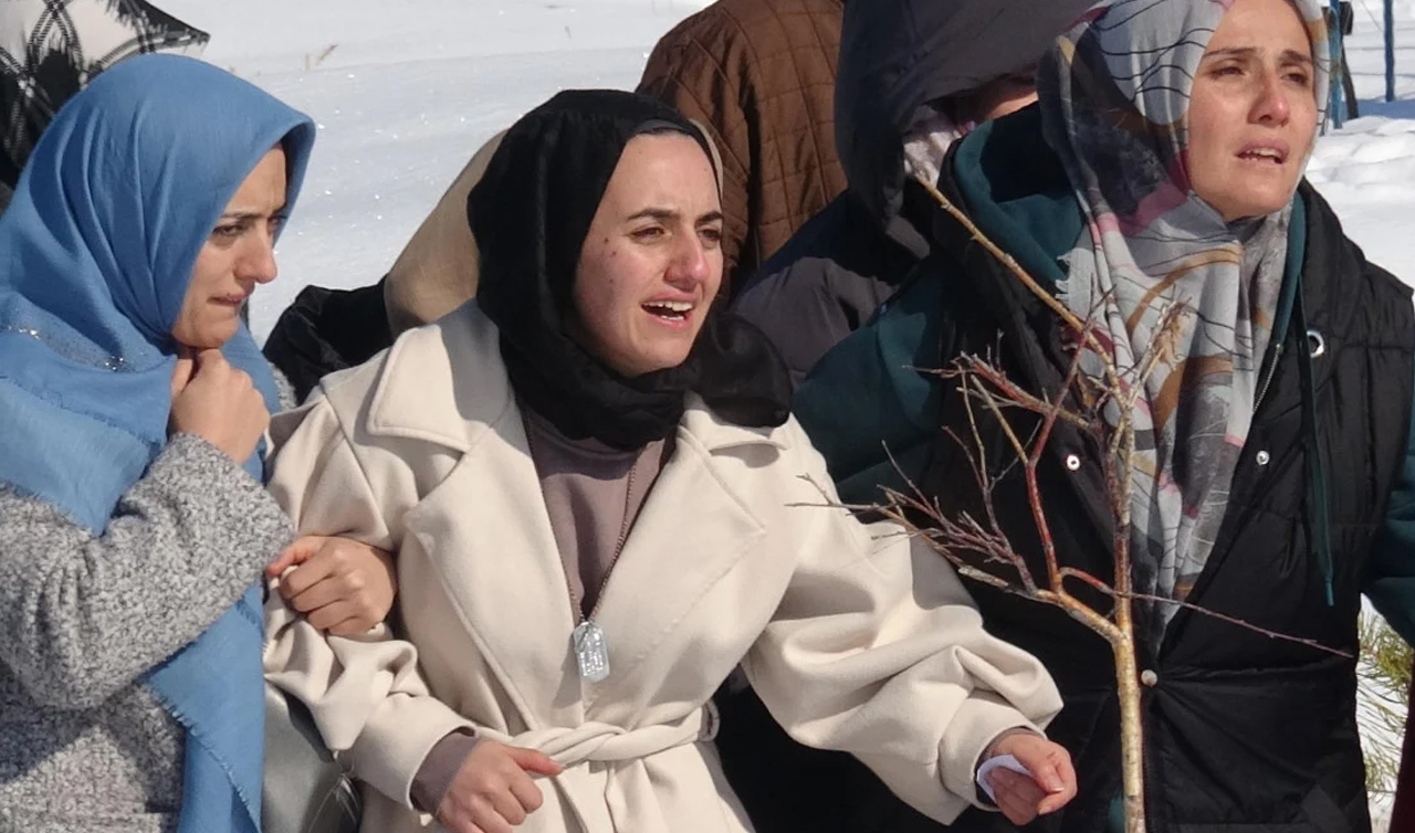 Sözlüsünün künyesini boynuna asan Nefise Öztürk (25), cenazede gözyaşlarını tutamadı ve ayakta durmakta güçlük çekti. Öztürk'ü, yakınları teselli etmeye çalıştı.