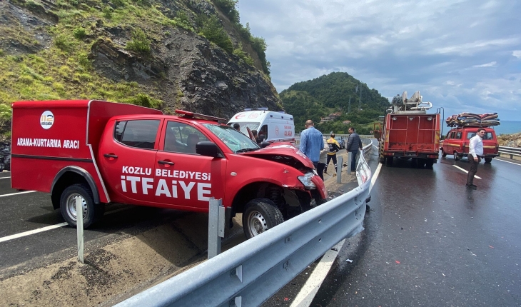 Kaza sonrası olay yerinden ayrılan ekipler Ilıksu mevkisinden itfaiye müdürlüğüne dönüş sırasında yağıştan kayganlaşan yolda kaza yaptı. Kontrolden çıkan 67 DZ 719 plakalı pikap bariyere çarparak durabildi.
