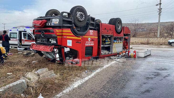 Aksaray'da, kazaya müdahaleye giden itfaiye aracının devrilmesi sonucu yaralanan 6 itfaiye eri hastaneye kaldırıldı.