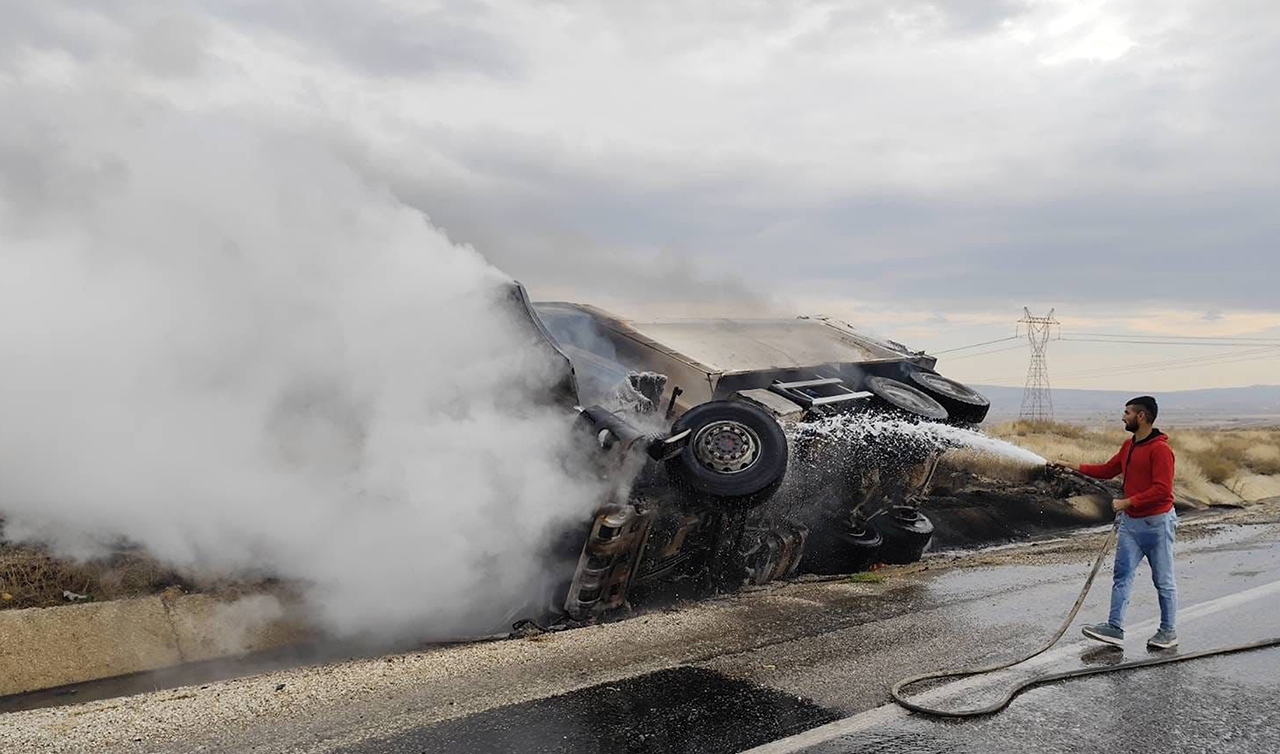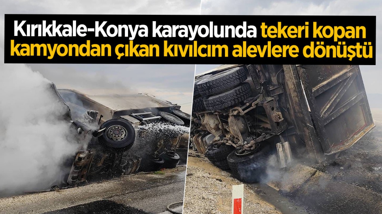 Kırıkkale-Konya karayolunda tekeri kopan kamyondan çıkan kıvılcımın yol açtığı yangın, büyük çapta maddi hasar oluşturdu.