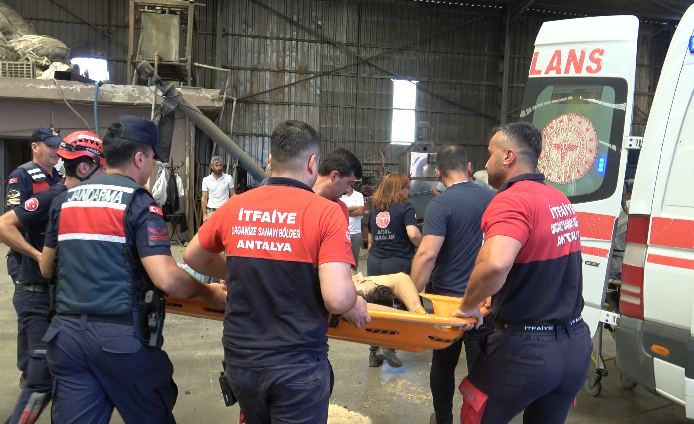Antalya'nın Döşemealtı ilçesindeki bir fabrikada plastik kırım makinesine düşen Özbekistan uyruklu Kudratov Mırzokhıd'in (28) iki bacağı, diz altından koptu.