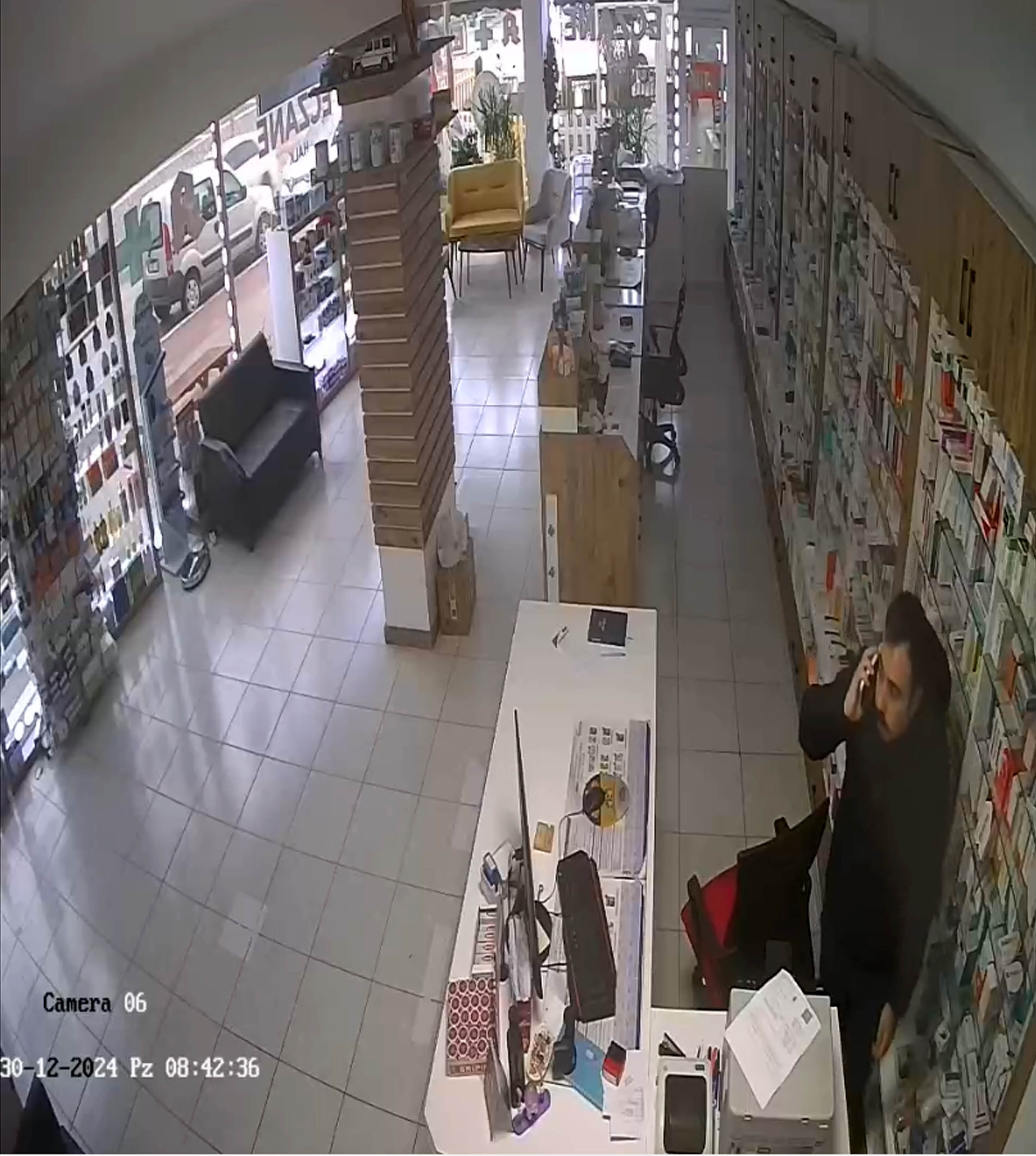 2 el ateş açan B.V., geldiği araçla bölgeden uzaklaştı. İhbar üzerine gelen polis ekipleri, iş yerinde incelemede bulundu. Eczanede ve raflardaki bazı ilaçlarda zarar oluştuğu belirlenirken, B.V.'nin yakalanması için çalışma başlatıldı.