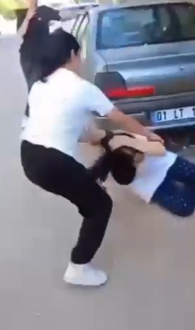 Genç kızlar, mahalle arasında diğer kızı yumruk ve tekmeler atarak darp etti. Genç kızların arkadaşlarının yaşananları adeta film izler gibi izlemesi dikkat çekti.