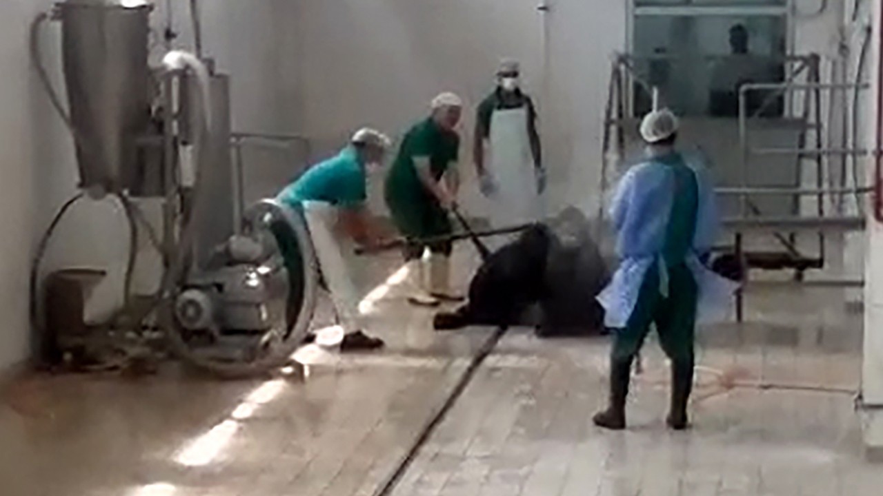 Adana'da Et ve Süt Kurumu’na bağlı kombinada kesim öncesi büyükbaş hayvanın başına defalarca sopayla vuran kurum personeli M.A.T. ve İ.G., adliyeye sevk edildi.