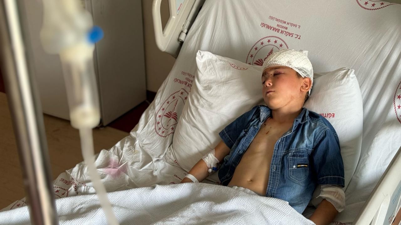 Başından ve vücudunun çeşitli yerlerinden yaralanan çocuk, çevredekilerin yardımıyla kurtarıldı.