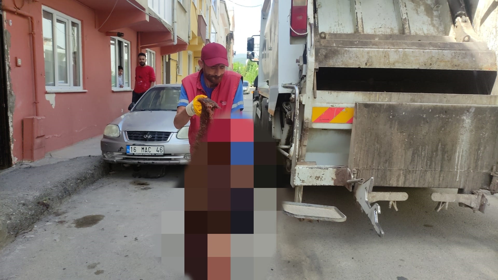 Orhangazi ilçesi Muradiye Mahallesi Endüstri Meslek Lisesi Caddesi’nde sabah saatlerinde bir çöp konteynerini boşaltmak isteyen belediyenin temizlik işçileri, ayıya ait beden parçalarıyla karşılaştı.