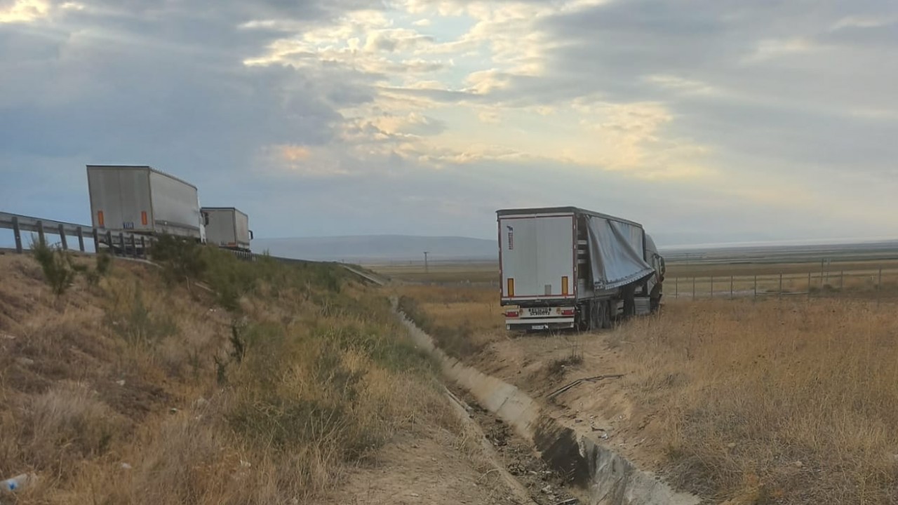 Ankara - Niğde Otoyolunda bariyerelere çarparak şarampole inen beyaz eşya yüklü tırın sürücüsü hafif yaralandı.