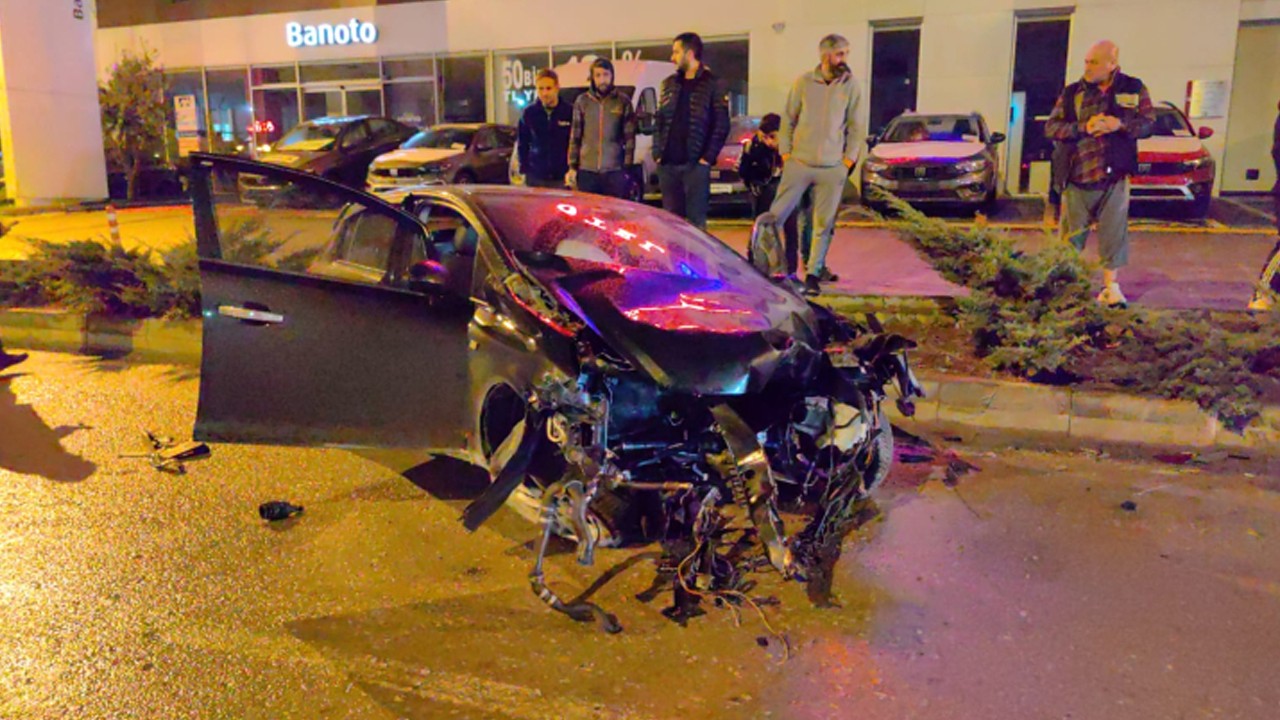 Ağaca çarpan otomobilin motoru kopup yola fırlarken, çevredekilerin ihbarı üzerine kaza yerine polis ve sağlık ekipleri sevk edildi.