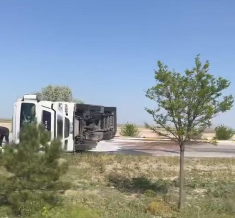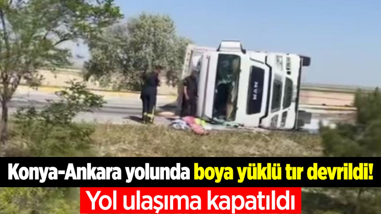 Konya-Ankara kara yolunda boya yüklü tırın devrilmesi sonucu meydana gelen kazada sürücü yaralandı. Trafiğe kapalı olan kara yolu ise alternatif güzergahtan kontrollü sağlanıyor.
