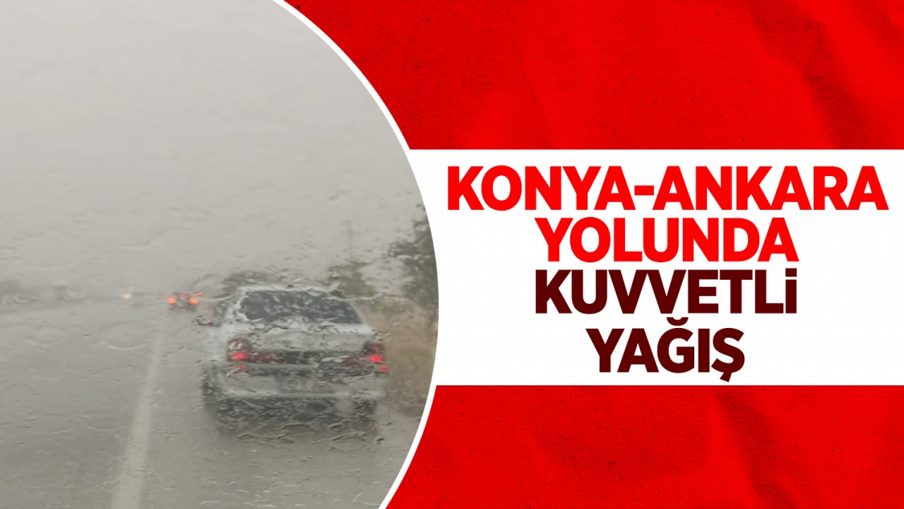 Konya-Ankara kara yolunda kuvvetli yağış etkili oldu. Şiddetli yağış nedeniyle trafik durma noktasına geldi.