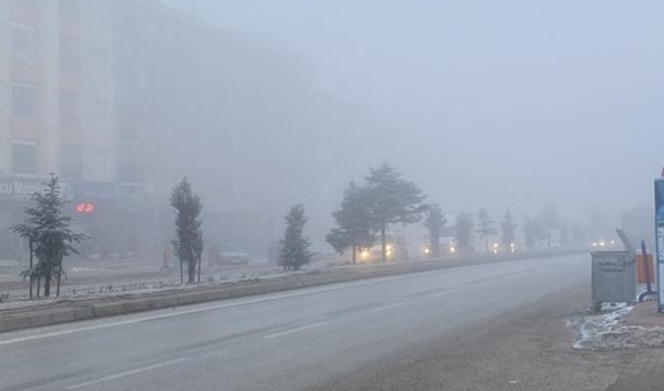 Konya'nın Kulu ilçesinde etkili olan sis nedeniyle görüş mesafesi 30 metreye kadar düştü.