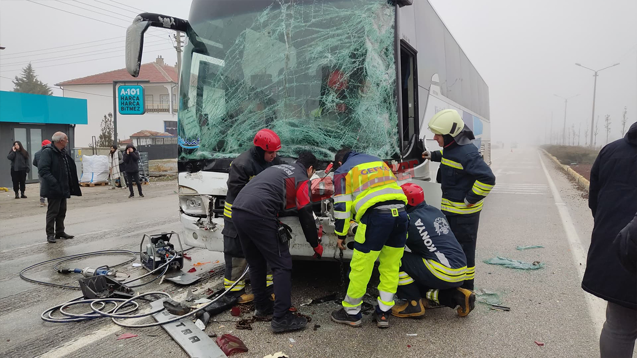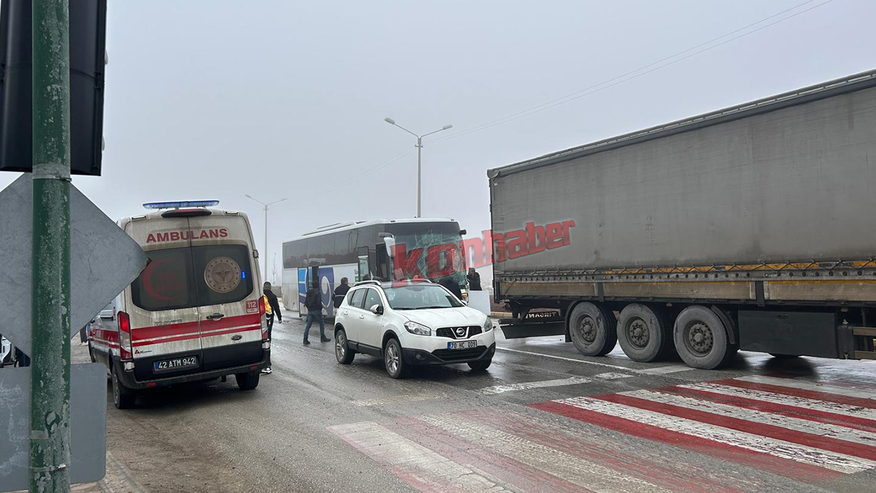 Yoğun sis ve buzlanma nedeniyle Kulu ilçesi Ömeranlı Mahallesinde meydana gelen kazaya yolcu otobüsü, tır ve 3 otomobil karıştı.