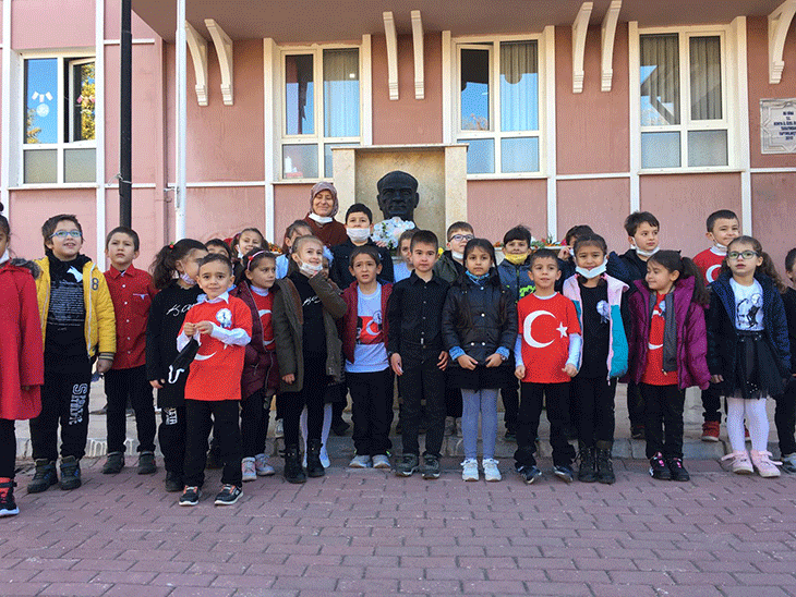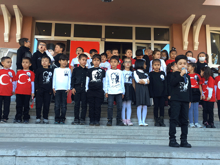 Öğrenciler, Al bayraklı ve Atatürk resimli kıyafetleriyle Atatürk’ü anlatan şiirler okudu, okulun Atatürk büstüne çiçekler bıraktı. Öğrenci ve öğretmenlerin yoğun katılımıyla gerçekleşen tören büyük bir ilgi ile izlendi