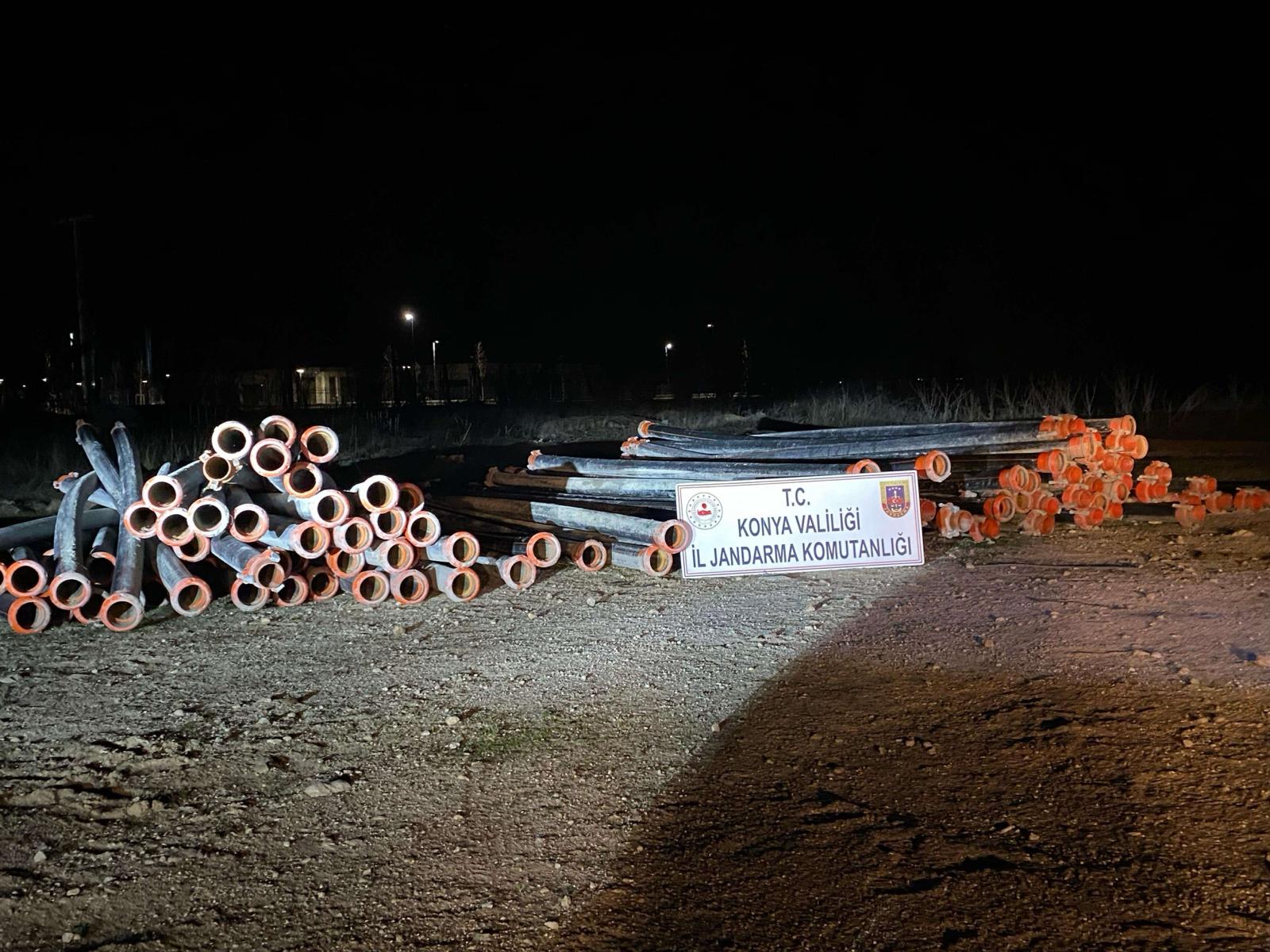 Konya'nın Karatay ilçesinde geçtiğimiz günlerde yağmurlama sulama sistemlerine ait 150 adet boru kimliği belirsiz kişiler tarafından çalındı. Olayın ardından kaçan şüphelileri yakalamak için çalışma başlatan Jandarma, şahısları suçüstü yakaladı.