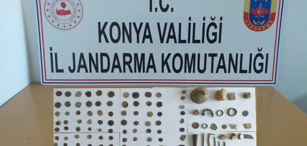 Konya'nın Ilgın ilçesinde jandarmanın düzenlediği operasyonda 150 adet tarihi eser ele geçirilirken, 2 kişi gözaltına alındı.