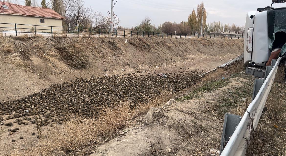 Konya'nın Çumra ilçesinde pancar yüklü kamyonun devrilmesi sonucu 1 kişi yaşamını yitirdi.