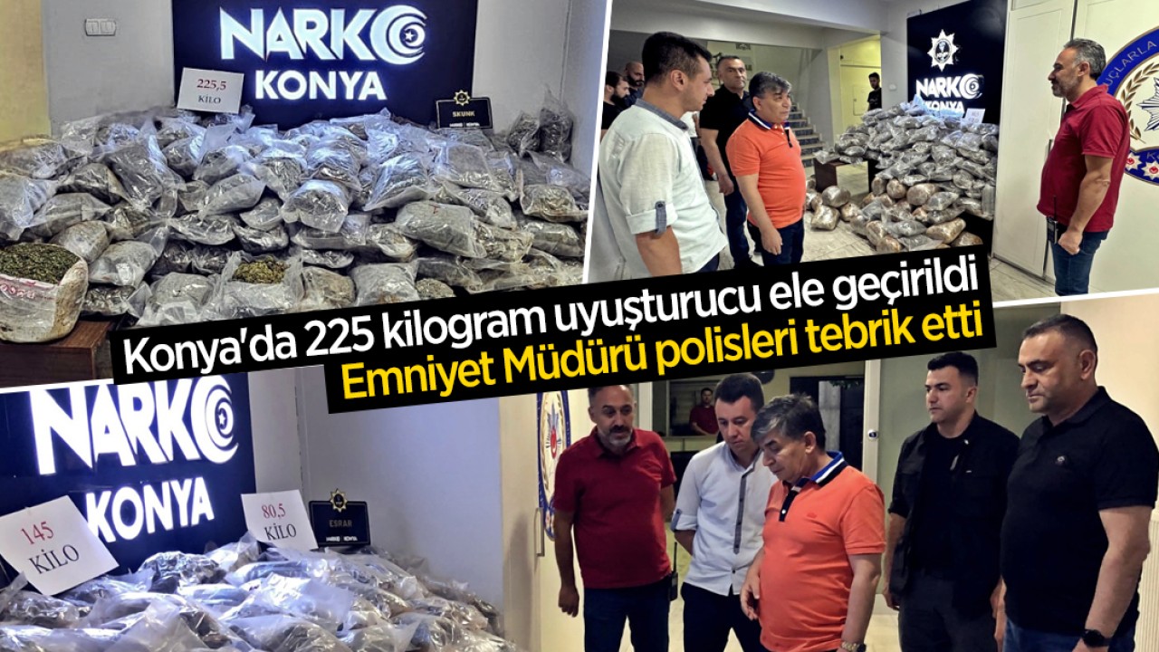 Konya Emniyet Müdürlüğü Narkotik Suçlarla Mücadele Şube Müdürlüğü ekiplerince Konya kent merkezinde uyuşturucu operasyonu düzenlendi. Operasyonda 225 kilogram uyuşturucu ele geçirildi. Konya İl Emniyet Müdürü Mahmut Karabulut, polisleri tebrik etti.