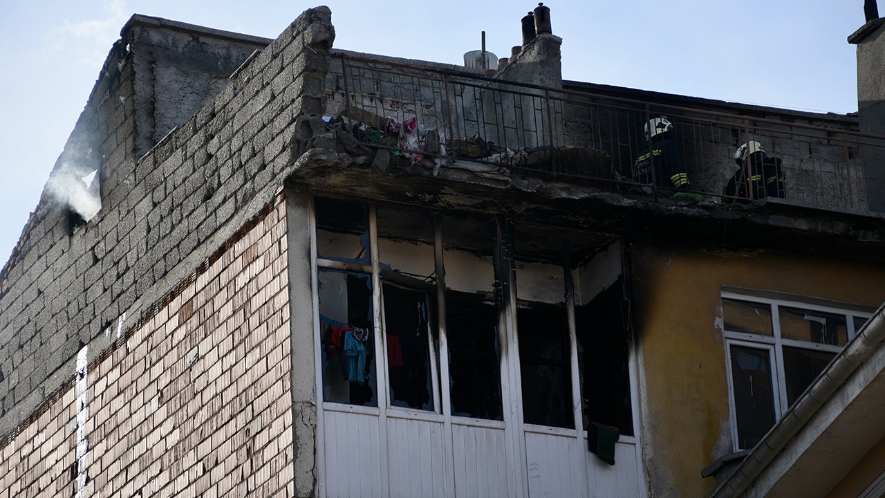 Konya'da 4 katlı apartmanın çatı katında çıkan yangın, itfaiye ekiplerince söndürüldü.