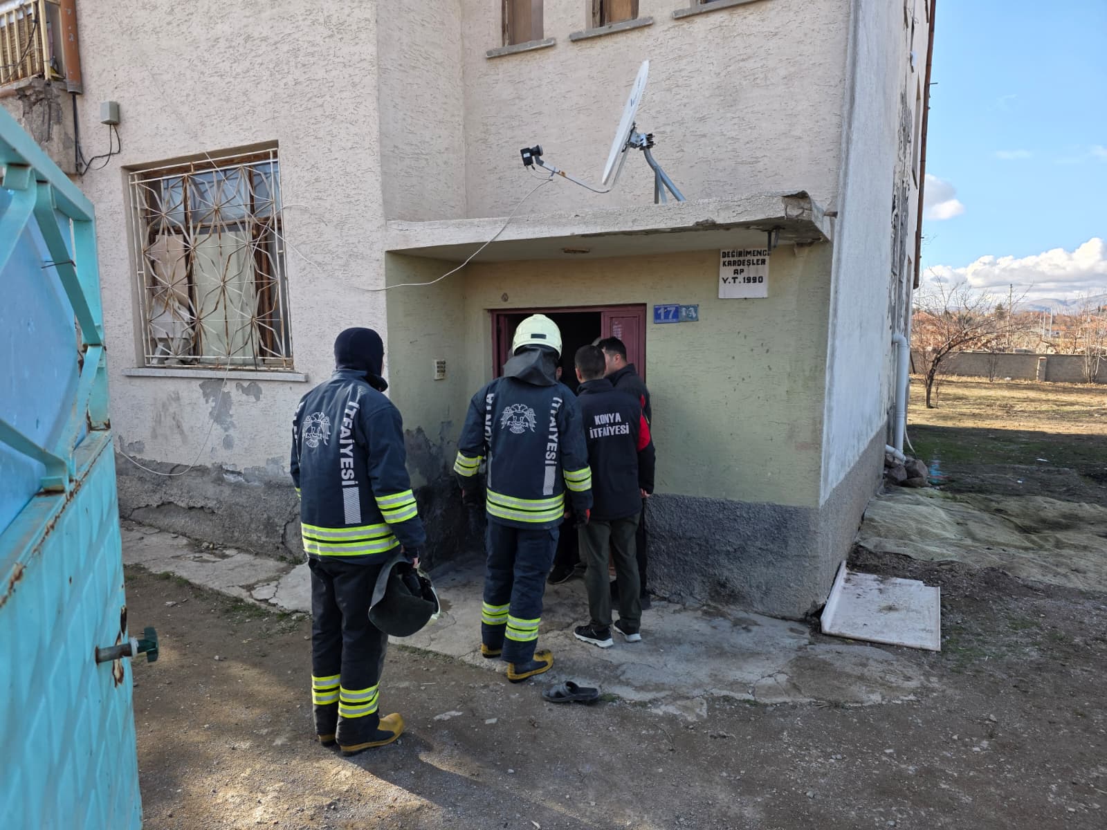 Konya'nın Kulu ilçesinde 4 katlı bir evde çıkan yangın itfaiyenin müdahalesi ile söndürüldü.