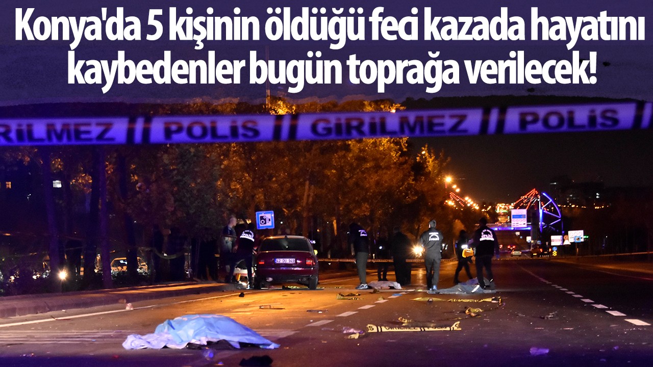 Konya'da, yolun karşısına geçmeye çalışan yayalara otomobil çarptı. Kazada, 5 kişi yaşamını yitirmiş , 5 kişi de yaralanmıştı. Vefat eden 5 kişi bugün toprağa verilecek.