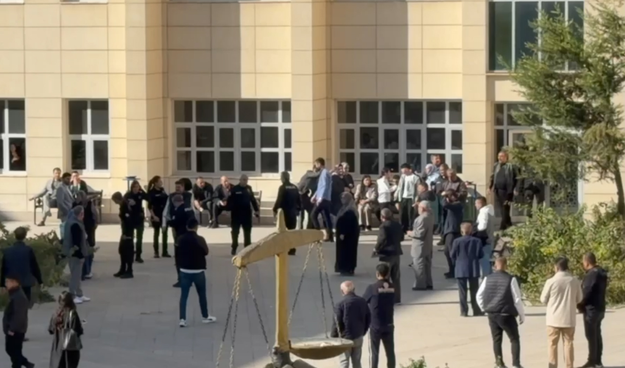 Çıkan tartışma kısa sürede büyüyerek kavgaya dönüştü. Adliyede görevli polis ekipleri, tarafları ayırıp kavgayı sonlandırdı. Kavga anı kameraya yansıdı.