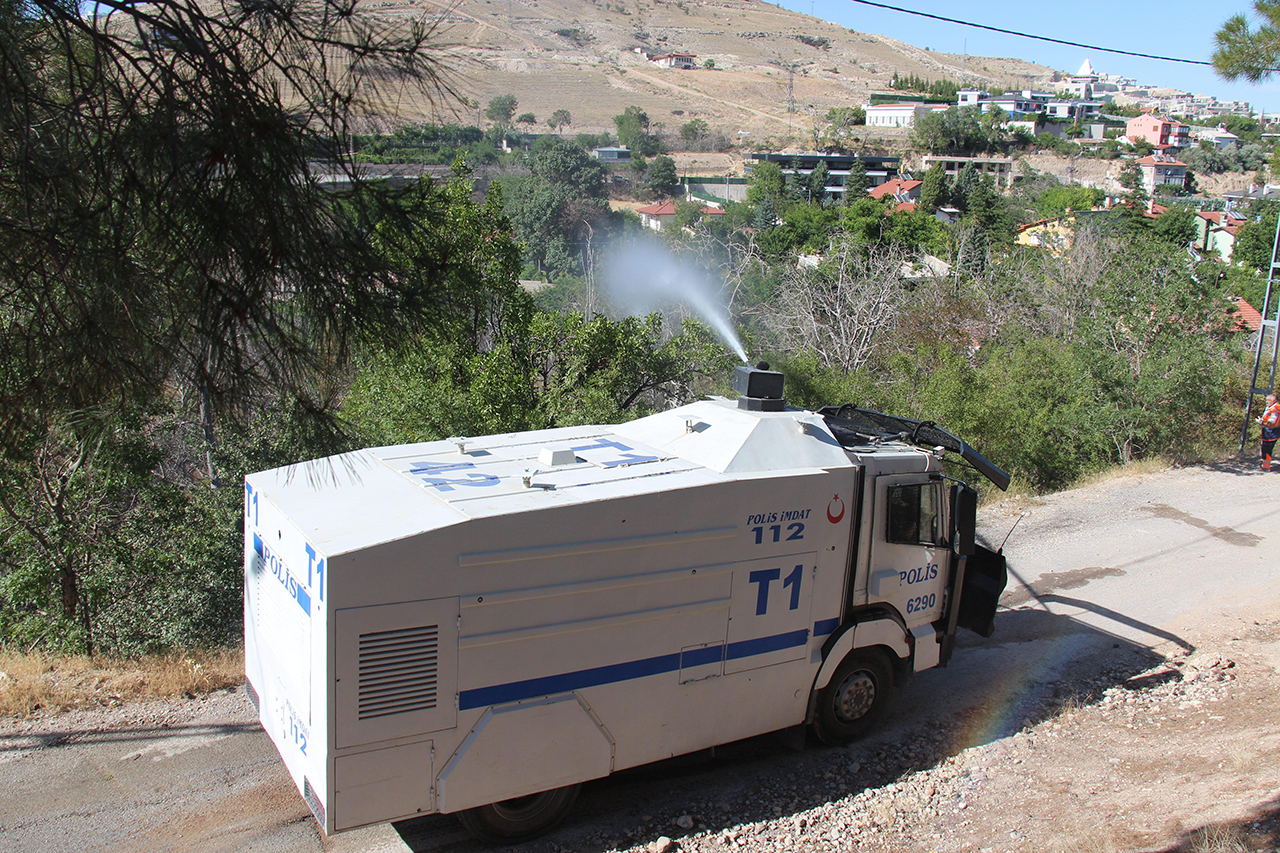Kısa sürede olay yerine ulaşan polis ekipleri, yangının büyümesini önlemek için yoğun çaba sarf etti. TOMA araçlarından yapılan su müdahalesiyle alevlerin yayılması engellendi.