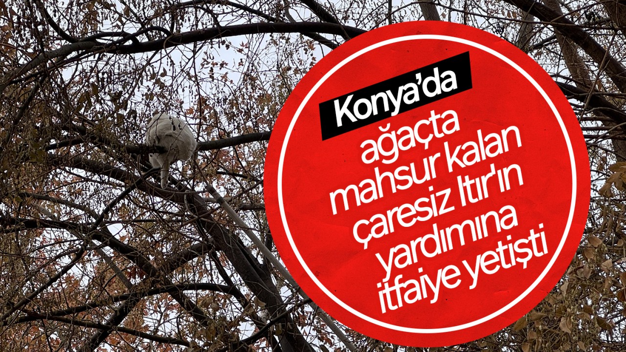 Konya'nın merkez Meram ilçesinde ağaçta mahsur kalan kedi, itfaiye ekibince kurtarıldı.