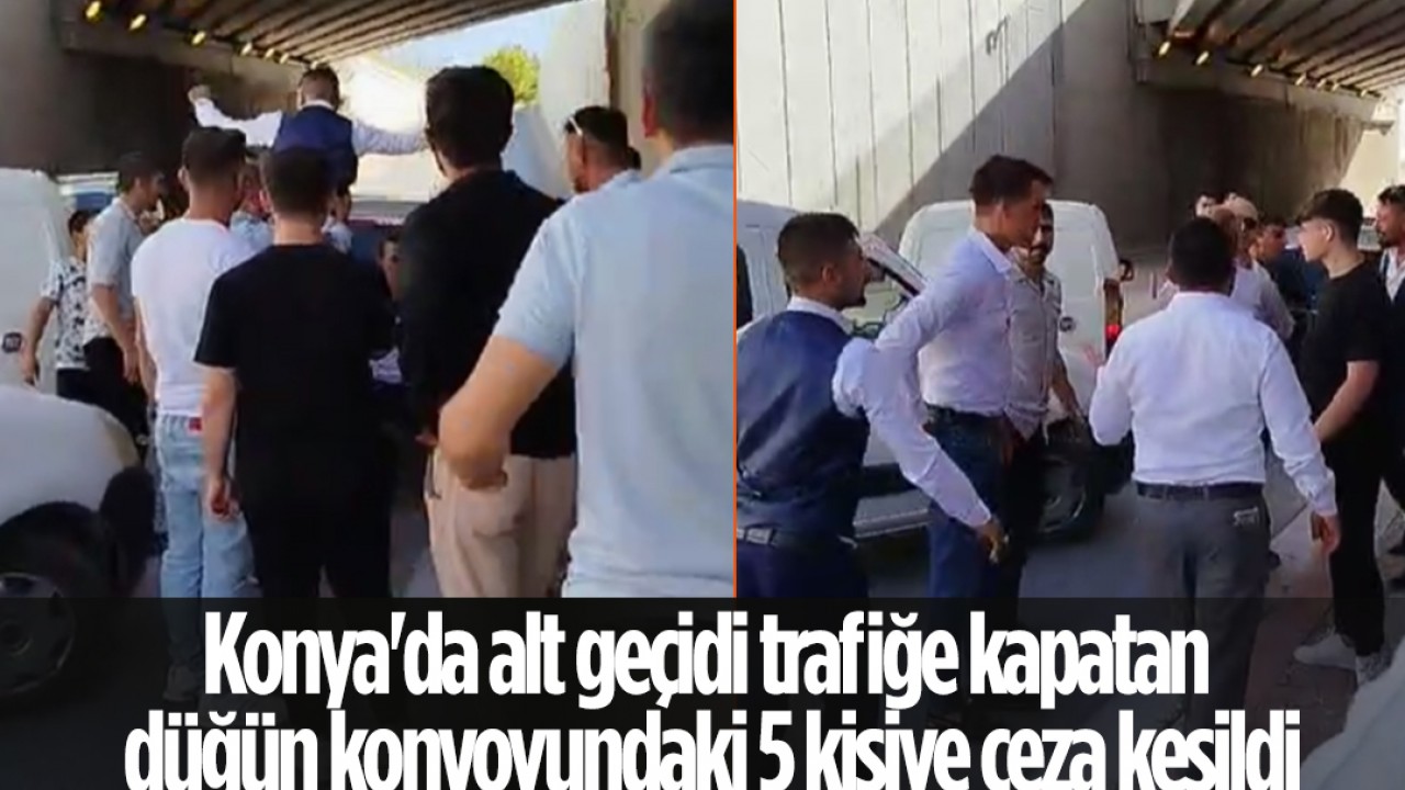 Konya'nın Meram İlçesi Yaylapınar alt geçidinde yolu trafiğe kapatan düğün konvoyundaki kişilere Konya İl Emniyet Müdürlüğü Trafik DEnetleme ve Şube Müdürlüğü ekipleri cezayı kesti.