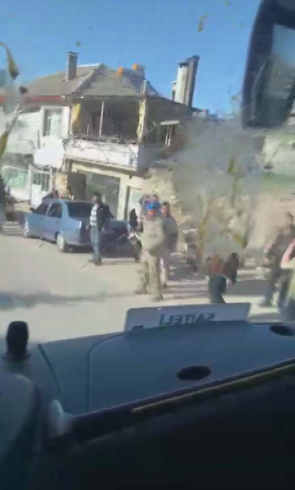 Otobüsün camları kırılırken, o anlarda cep telefonu kamerasına kaydedildi.