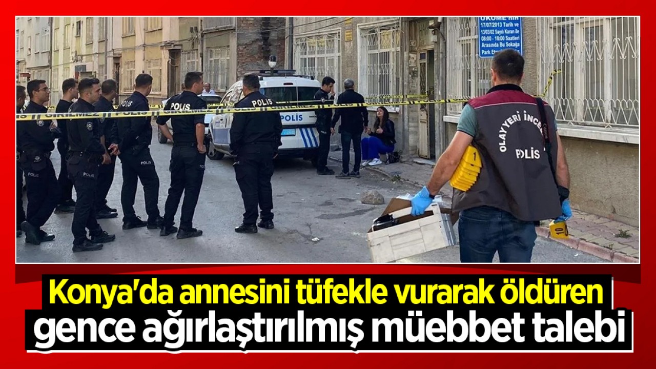 Konya'da annesi Ayfer A.'yı (49) tüfekle vurarak öldüren 26 yaşındaki Yusuf Furkan Helvacı hakkında ağırlaştırılmış müebbet hapis cezası istemiyle dava açıldı.