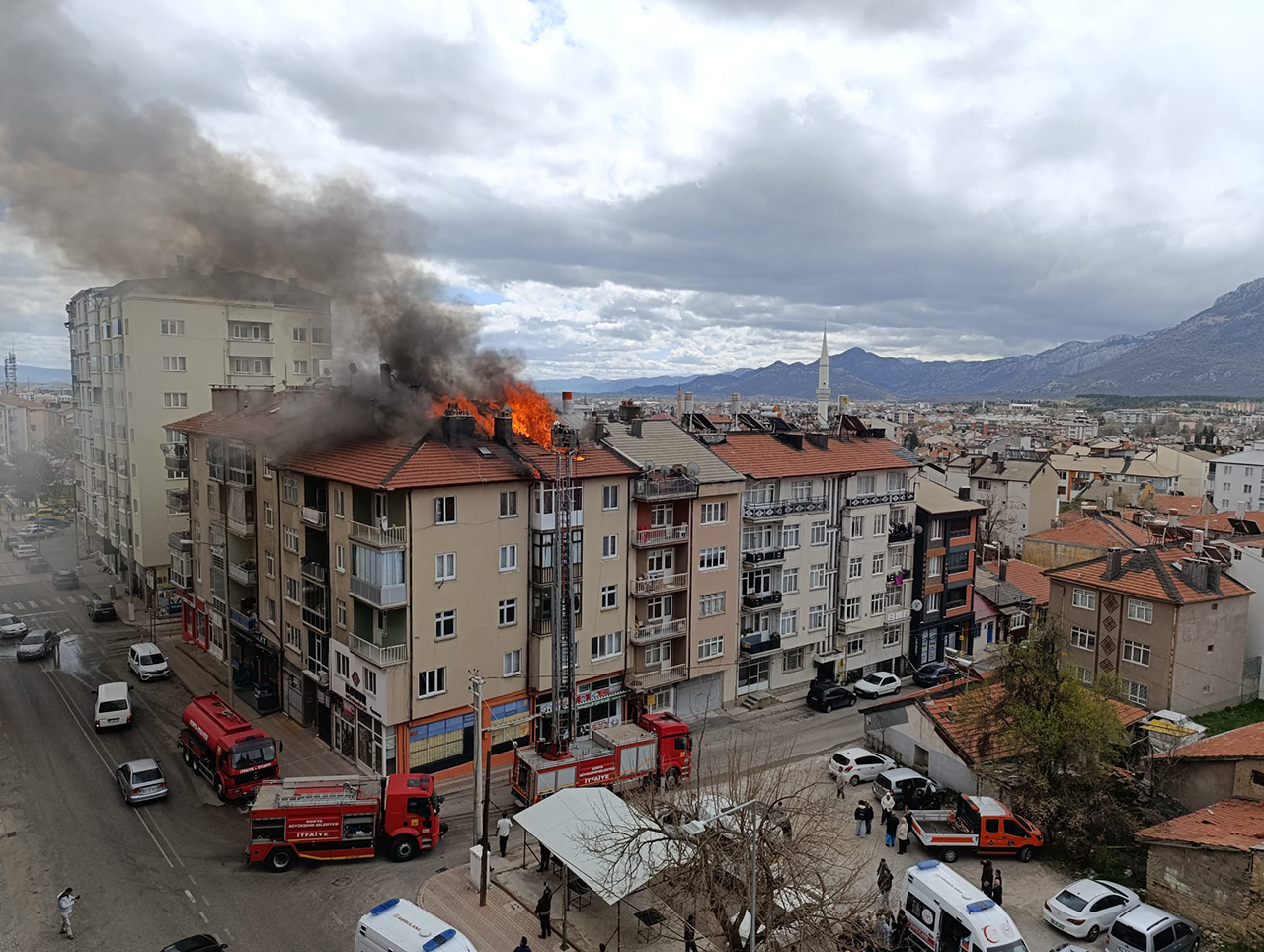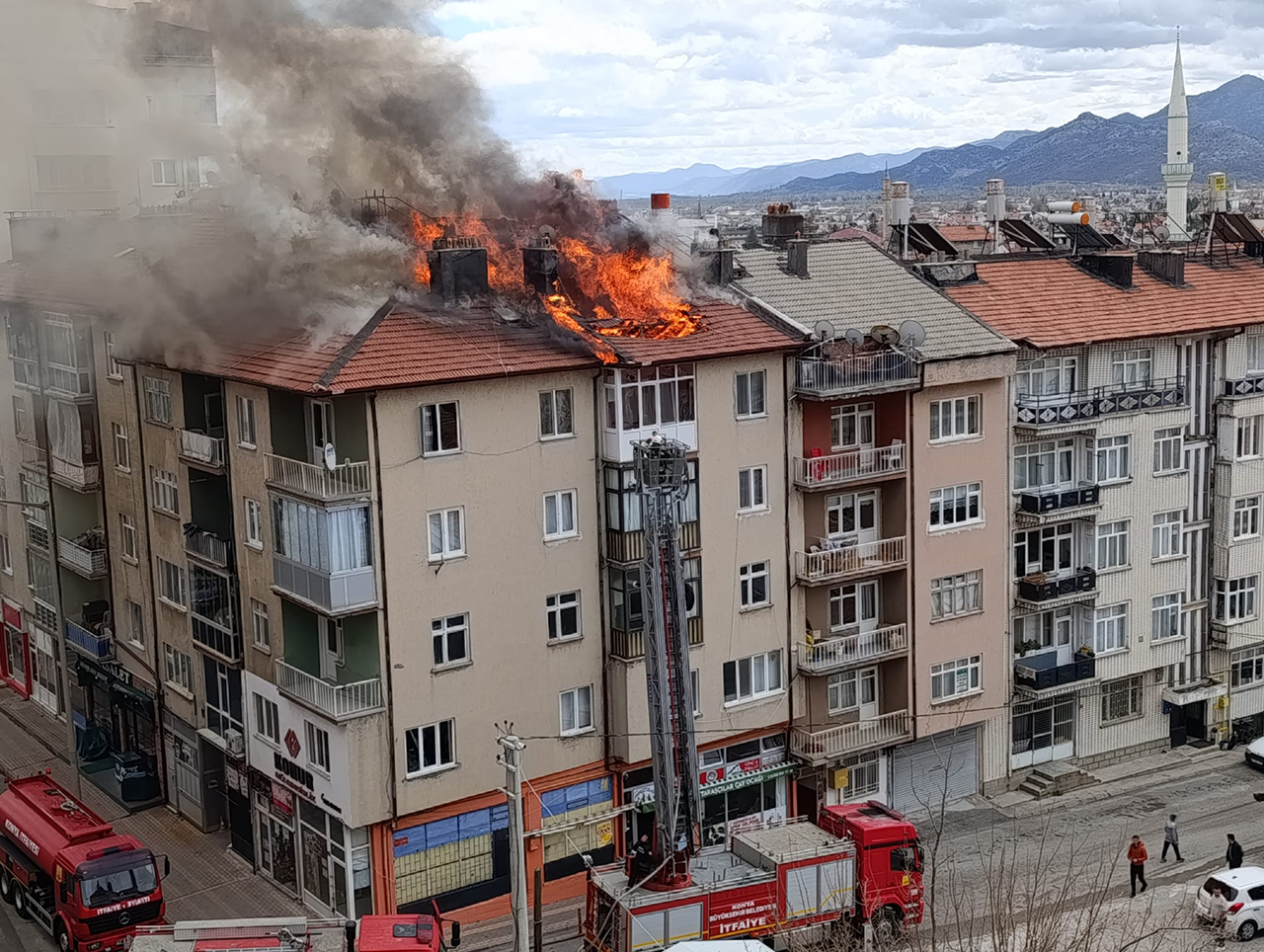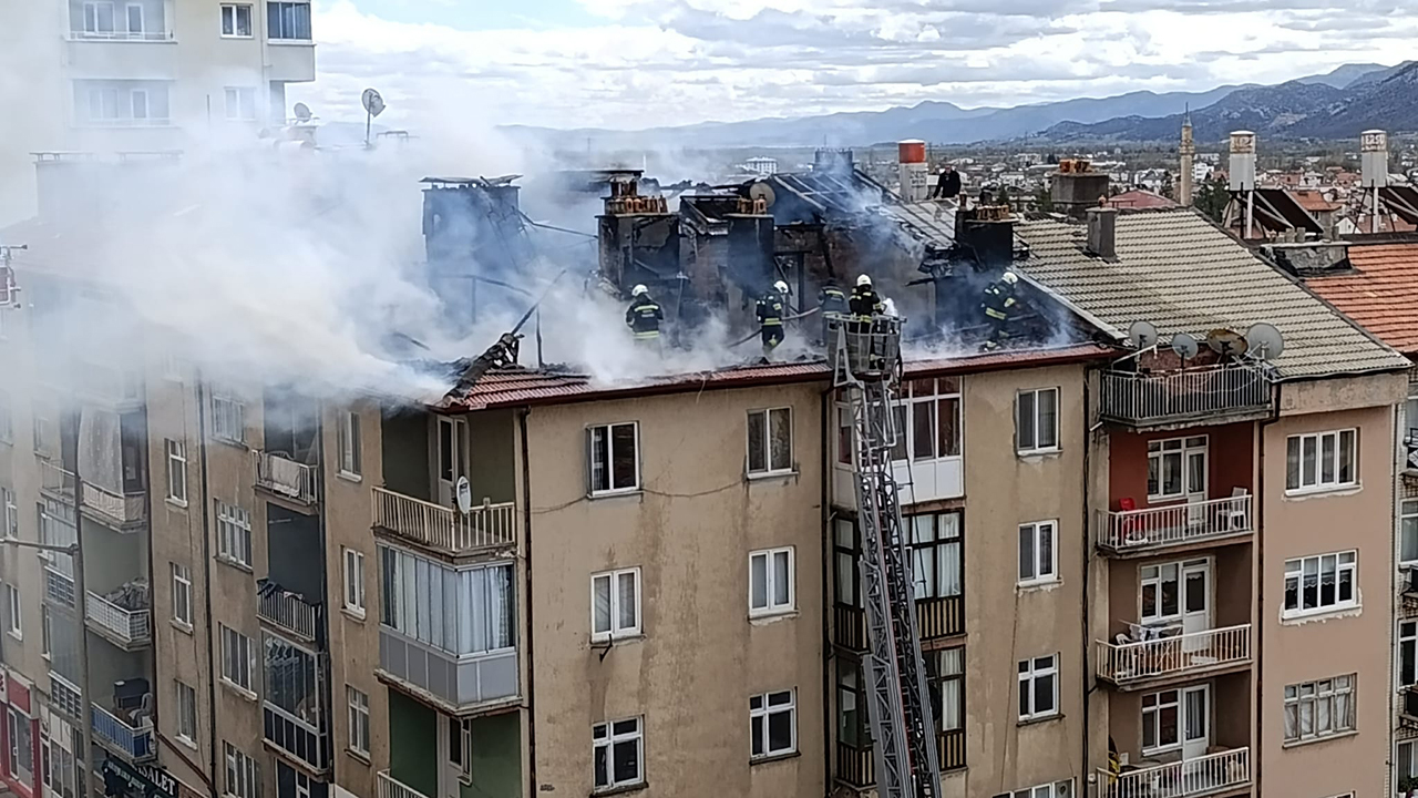 İlçeye bağlı Sofuhane Mahallesi'nde 5 katlı bir apartmanın çatı katında, henüz belirlenemeyen nedenle yangın çıktı.