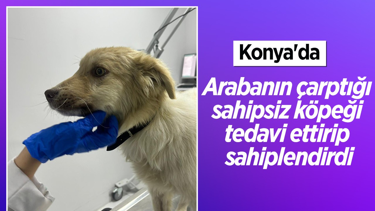 Konya'nın Akşehir ilçesinde bir hayvansever, otomobilin çarptığı yaralı sahipsiz köpeği tedavi ettirdikten sonra sahiplendirdi.