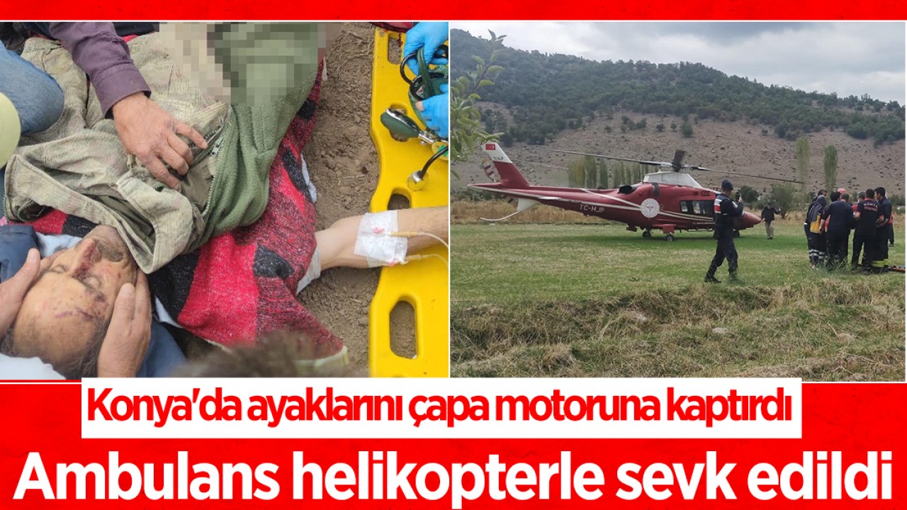 Konya'nın Seydişehir ilçesinde çiftçi Mehmet Gürbüz, tarlada çalışırken iki ayağını çapa motoruna kaptırdı. Ayakları bileklerinden kopma noktasına gelen Gürbüz, ambulans helikopterle Konya'ya götürüldü.