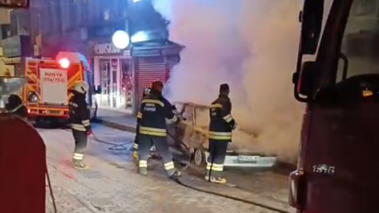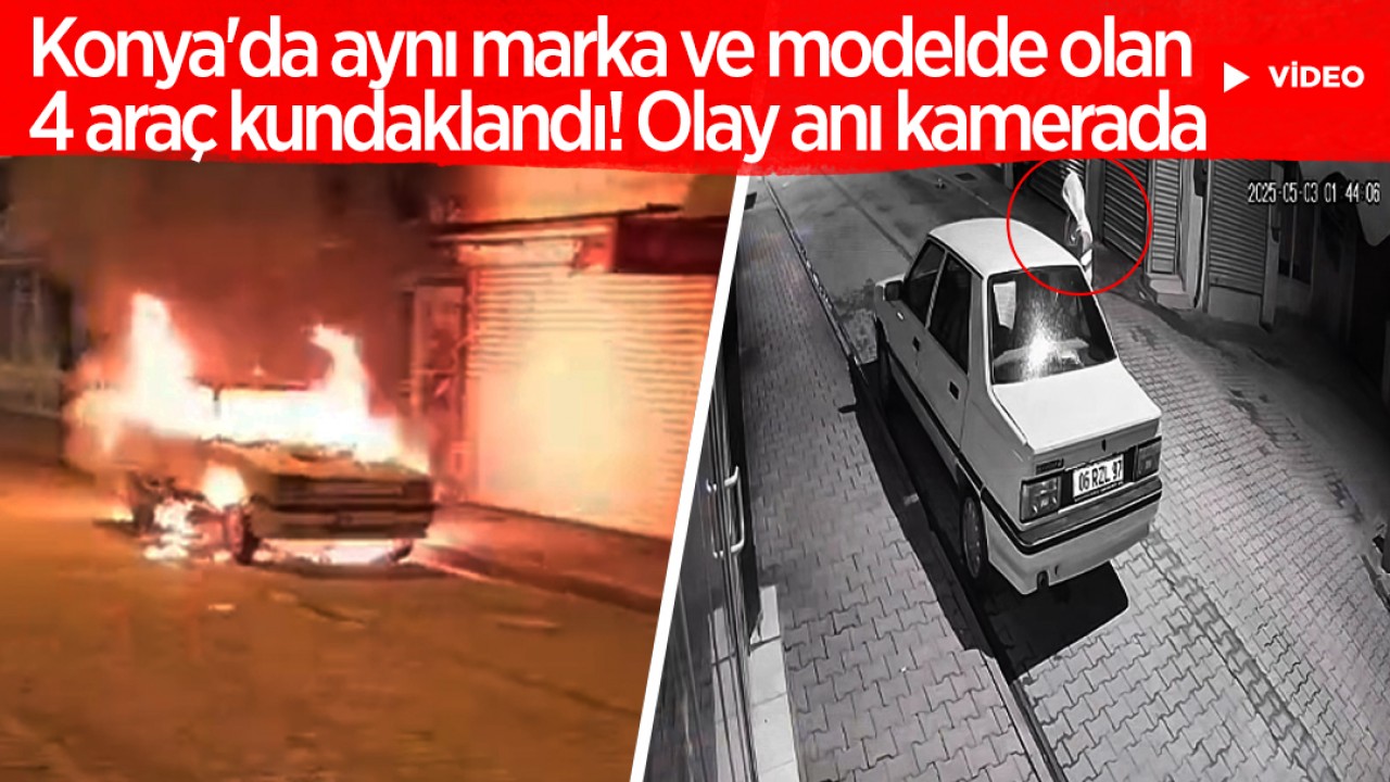 Konya'nın Ereğli ilçesinde aynı marka ve modelde olduğu belirlenen 4 araç kundaklandı. Araçların kundaklanma anı saniye saniye kameraya yansıdı.
