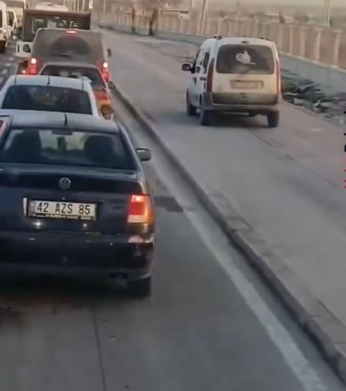 Karatay İlçesi Yolboyu Caddesi üzerinde kaydedilen görüntülerde, bir aracın trafiği tehlikeye düşürecek şekilde banket kısmını kullanarak ilerlediği görüldü.
