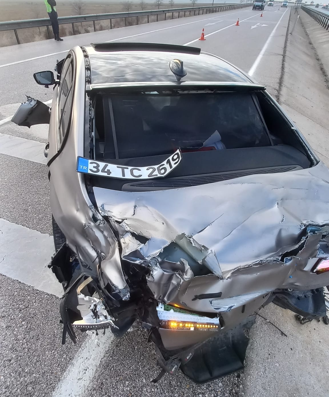 Kaza, 08:50 sıralarında Konya-Ankara kara yolu, Ömeranlı Mahallesi girişinde meydana geldi. Alınan bilgiye göre, seyir halinde olan M. E. K. (24) idaresindeki 34 TC 2619 plakalı otomobil, sürücüsünün direksiyon hakimiyetini kaybetmesi sonucu kontrolden çıkarak bariyerlere çarptı. Meydana gelen kazada sürücü K. yaralandı.