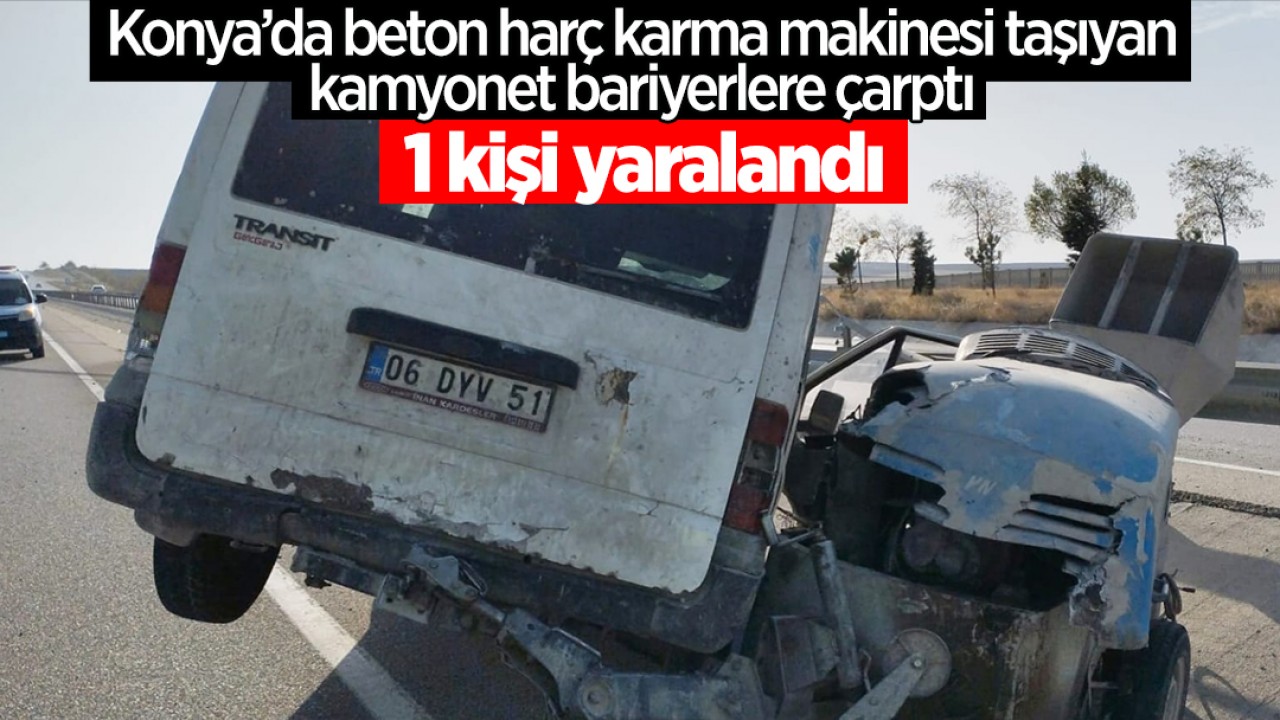 Konya'nın Kulu ilçesinde arkasında beton harç makinesi taşıyan kamyonetin bariyerlere çarpması sonucu meydana gelen trafik kazasında sürücü yaralandı.