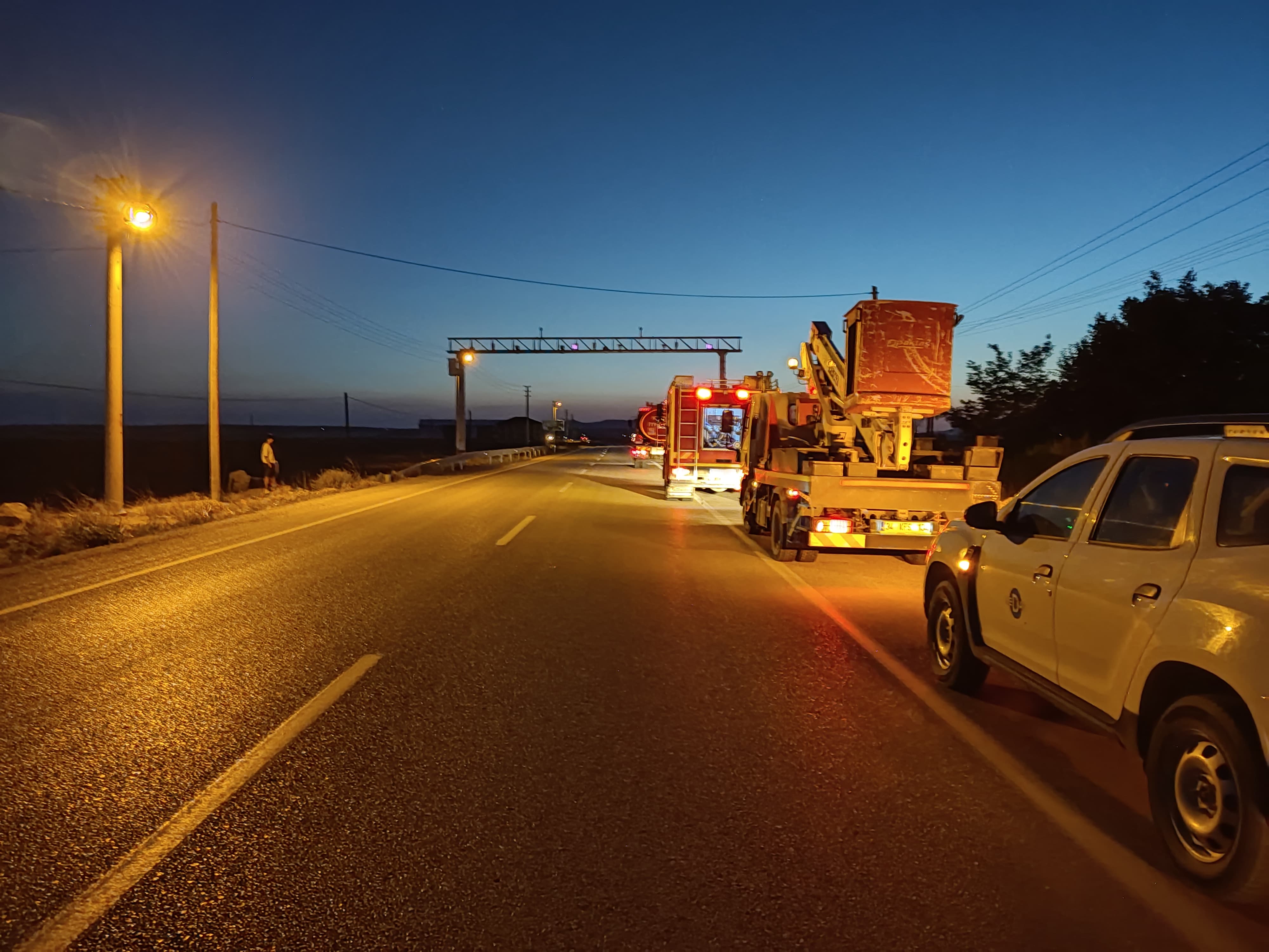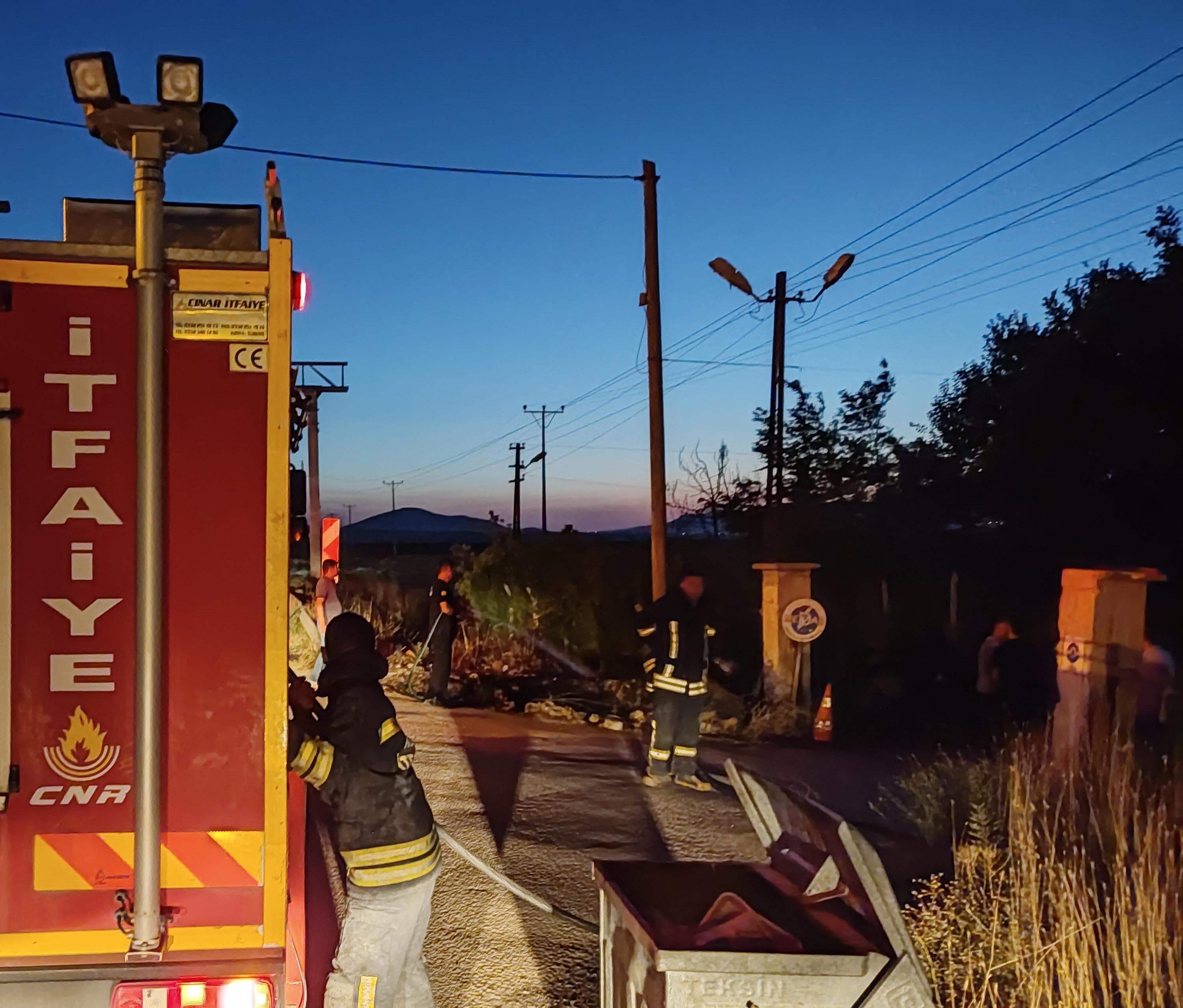 Alınan bilgiye göre, ilçe çıkışı, Karacadağ Mahallesi yolu üzerinde bulunan bir işletmeye ait bahçede ve yolun kenarında henüz bilinmeyen bir nedenle yangın çıktı.